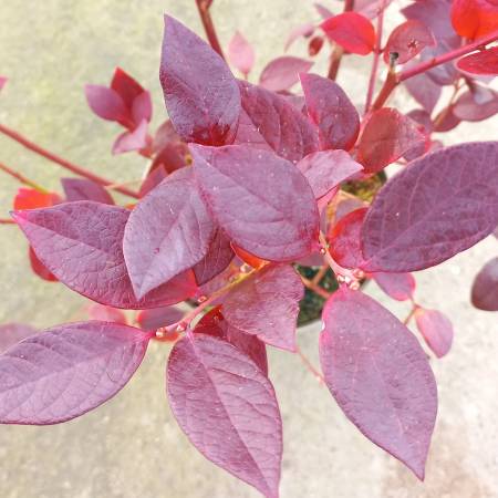 (Myrtille américaine) Arbuste dressé à feuillage caduc prenant de belles couleurs automnales. Petites fleurs blanches en avril et mai donnant de gros fruits bleu noir comestibles. Variété productive, récolte en juillet/août suivant les régions. Couleurs d'automne très attractives avec le feuillage rouge.